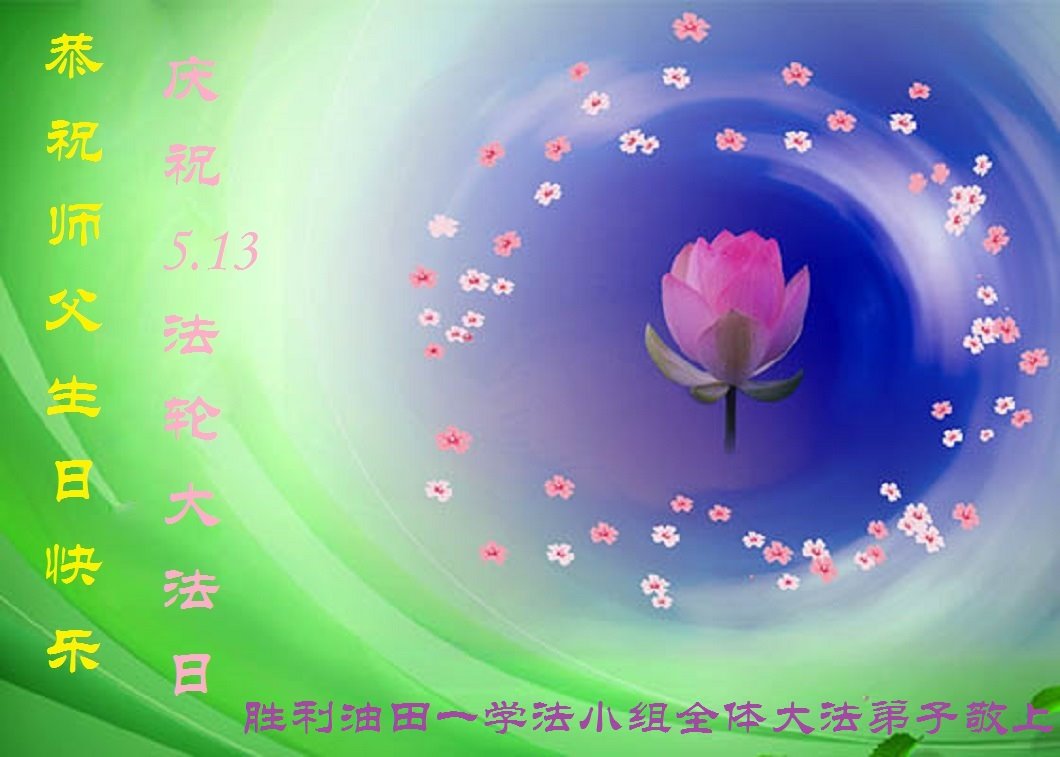 勝利油田學法小組大法弟子恭祝師尊生日快樂!恭賀世界法輪大法日!