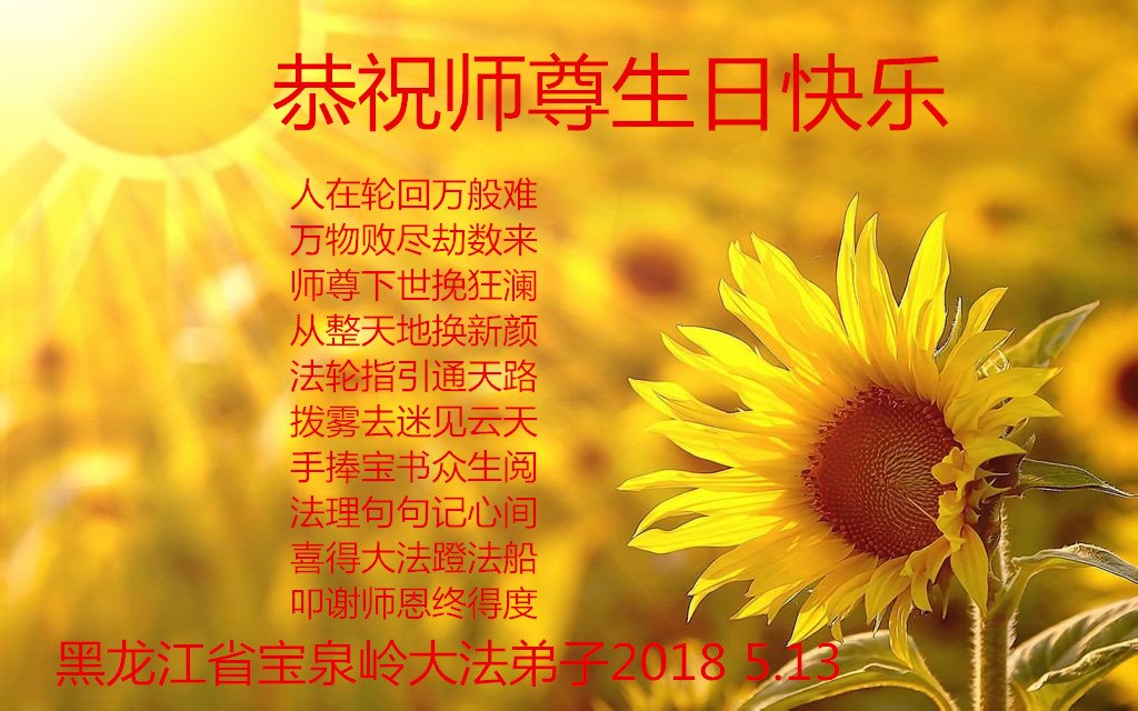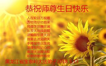 黑龍江寶泉嶺農墾大法弟子恭祝師尊生日快樂!