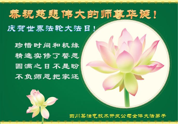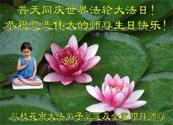攀枝花市大法弟子翠蓮及全家感恩師尊的慈悲救度!感恩師尊又一次為弟子承受,普天同慶世界法輪大法日!恭祝慈悲偉大的師尊生日快樂!