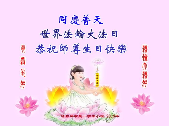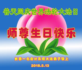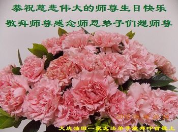 在同修們的幫助下,我也跟同修們一起學法、煉功。出去面對面講真相,發真相小單張、小冊子、貼法輪大法好紙貼。雖然做了大法弟子應該做的三件事,比起精進的同修們差的很遠。我今後一定聽師父的話,學好法,多學法,向內找,多向同修們學習共同精進。再次祝師父生日快樂!盼望師父早日回中國!