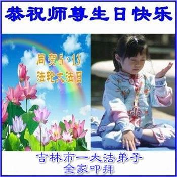 吉林市一大法弟子全家恭祝師尊生日快樂!