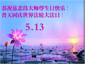 河北唐山市一學法小組大法弟子恭祝慈悲偉大師尊生日快樂!慶祝5.13世界法輪大法日!法輪大法好!真、善、忍好!
