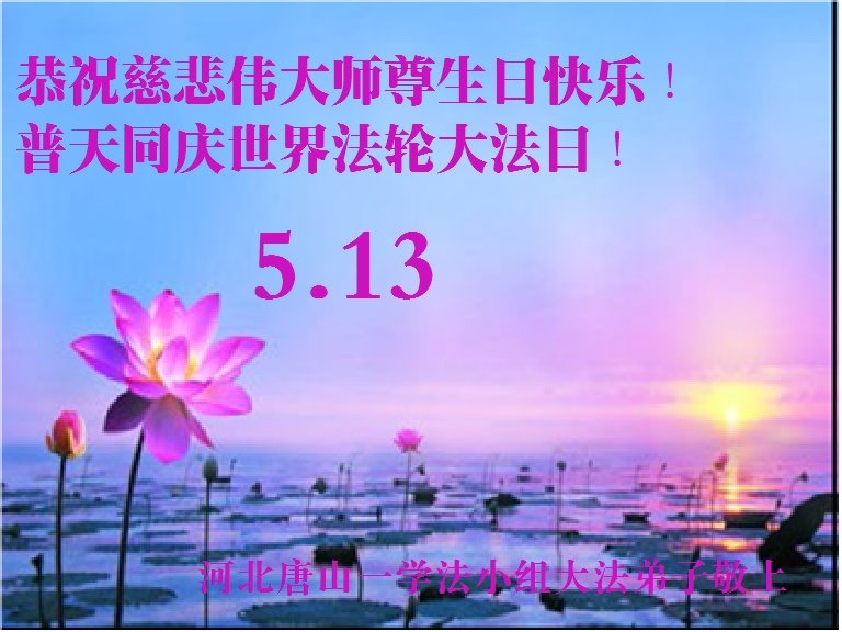河北省唐山市路北區一家大法弟子恭祝慈悲偉大的師尊華誕快樂!恭賀5.13世界法輪大法日!