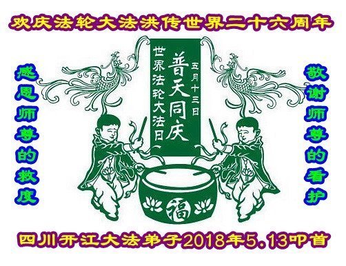 四川廣安全體大法弟子恭祝世界法輪大法日!祝師尊生日快樂!