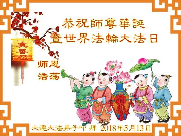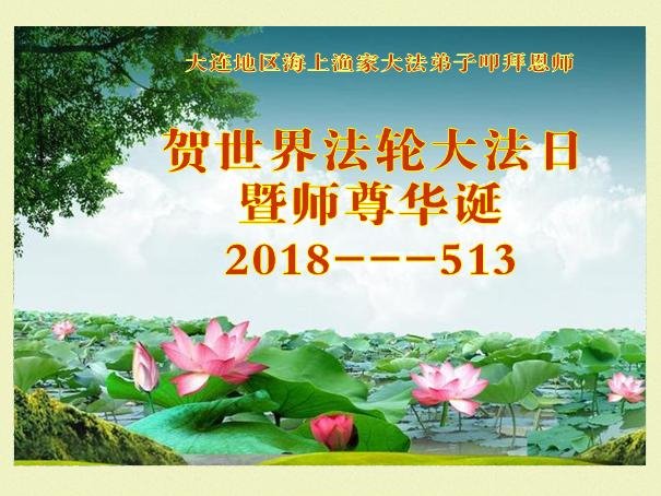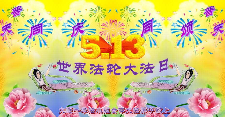 五月十三日是師尊的生日,也是世界法輪大法日!在這裏我們遼寧大連開發區一學法小組的大法弟子恭祝慈悲偉大的師尊生日快樂!恭祝世界法輪大法日!十九週年!