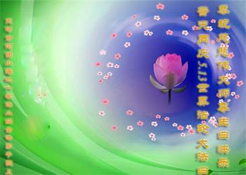 感謝師父給我第二次生命,把我洗淨帶進了一個新的世界。我對師尊的感恩是無以言表,只有借助五一三世界法輪大法日!這個偉大日子。向慈悲偉大的師尊祝願,祝慈悲偉大的師父生日快樂!法輪大法好,真善忍好。