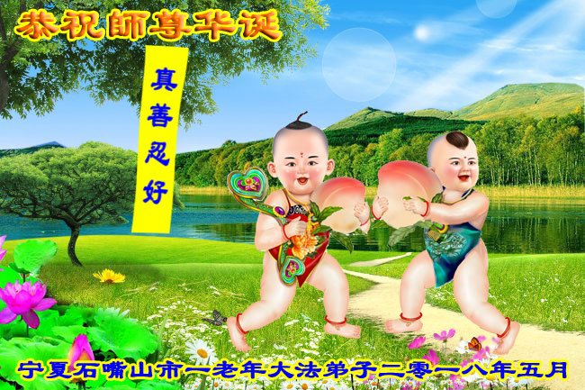 寧夏石嘴山市一老年大法弟子恭祝師尊華誕!慶祝法輪大法洪傳二十六週年!