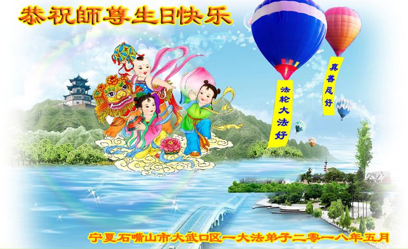 寧夏石嘴山大武口區一大法弟子祝師父生日快樂!