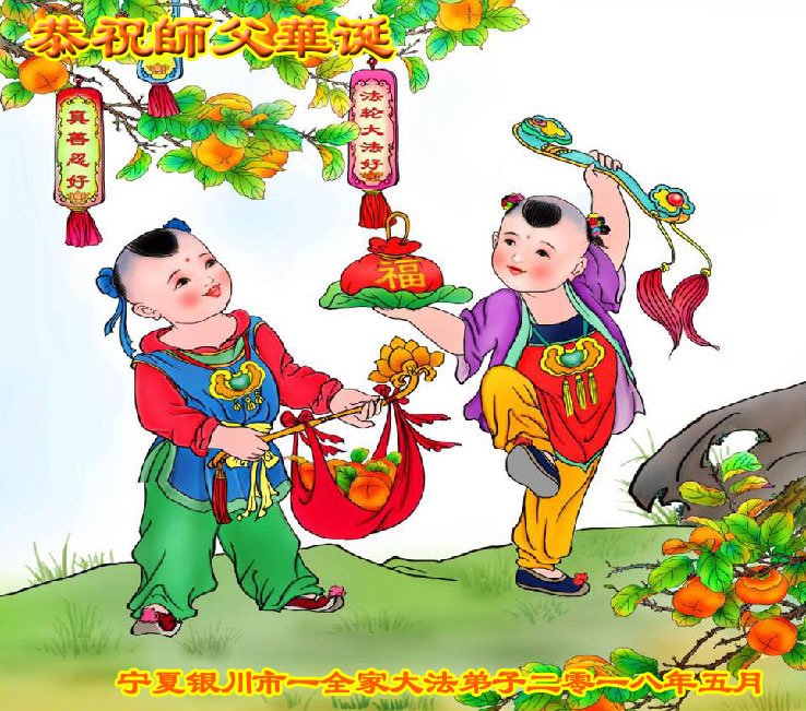寧夏銀川市一全家大法弟子恭祝師父華誕!恭賀世界法輪大法日!