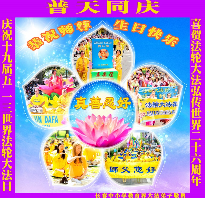 在這普天同慶的時刻。長春高校大法弟子恭祝慈悲偉大的師尊華誕暨世界法輪大法日!恭祝師尊生日快樂!