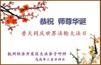 浙江杭州下沙經濟開發區大法弟子恭祝師尊華誕!恭賀世界法輪大法日!