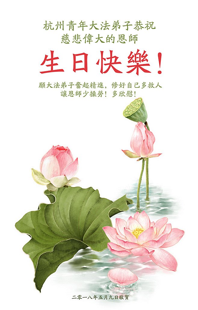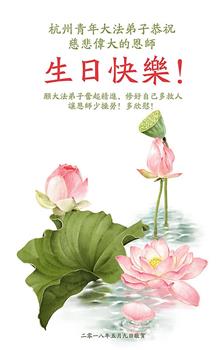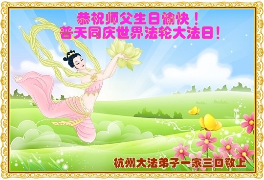 浙江杭州市一青年大法弟子代表全家恭賀法輪大法日!恭祝師尊生日快樂!
