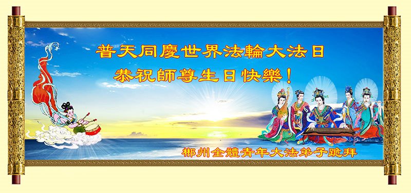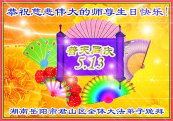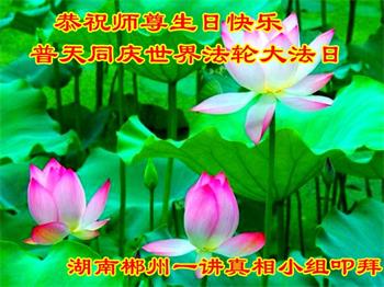 湘潭大法弟子慶祝法輪大法洪傳二十六週年!恭祝慈悲偉大師尊生日快樂!