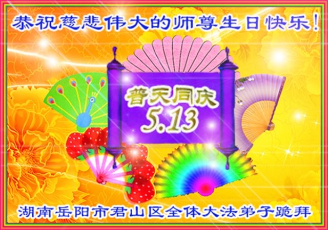 五月十三日,世界法輪大法日,我們恩師的生日。我們願將自己心中最美的祝願敬獻給慈悲偉大的恩師。師父,生日快樂!師父啊,謝謝您,是您賜予弟子揚帆破浪的勇氣,是您賜予弟子永不止息的信心,是您賜予弟子生命永遠的榮光。宇宙的史冊上將永遠銘刻著恩師對弟子浩蕩恩情。正法之路,仍在腳下延長。我們唯有精進,精進,再精進,才能不負恩師的厚望,才能不負史前的約定,才能回歸最初的美好家園。