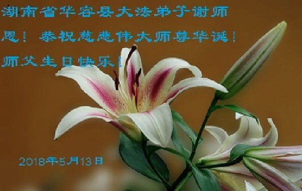 湖南省岳陽市華容縣大法弟子謝師恩!熱烈慶祝第十九屆世界法輪大法日暨法輪大法洪傳全世界二十六週年!恭祝慈悲偉大師尊華誕!師父生日快樂!