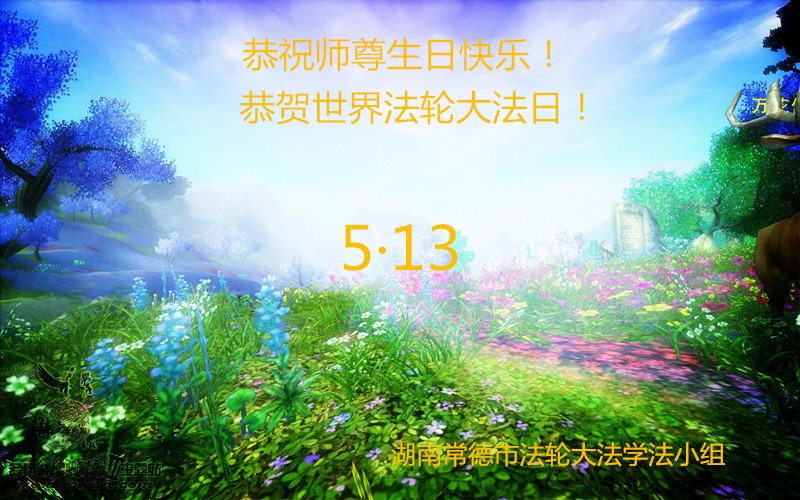 湖南岳陽一大法弟子,恭祝慈悲偉大的師尊生日快樂!恭賀5.13世界法輪大法日!感恩師尊的保護慈悲苦度!在師尊最大的付出和承受延續來的時間努力做好三件事,精進實修報師恩!讓師尊多一份欣慰,少一份操勞,再一次感恩師尊的慈悲苦度!跟師尊回家。