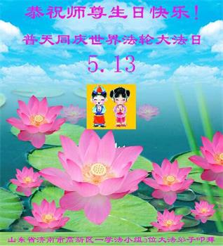 山東省濟南市章丘大法弟子恭賀世界法輪大法日暨慈悲偉大的師尊生日快樂!