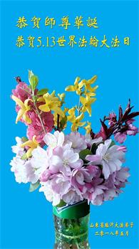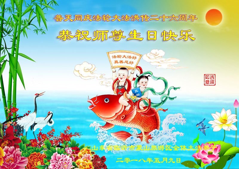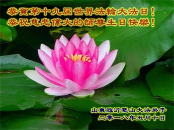 山東省臨沂大法弟子恭賀5.13世界法輪大法日及師尊華誕!