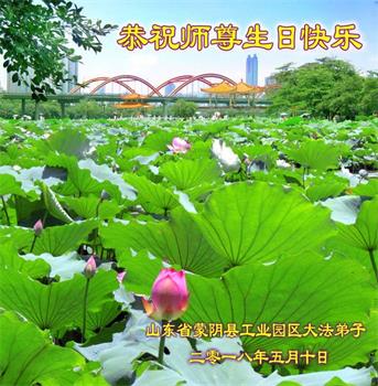 山東省臨沂市蒙陰縣工業園區大法弟子恭祝慈悲偉大的師尊生日快樂!慶賀法輪大法洪傳二十六週年!