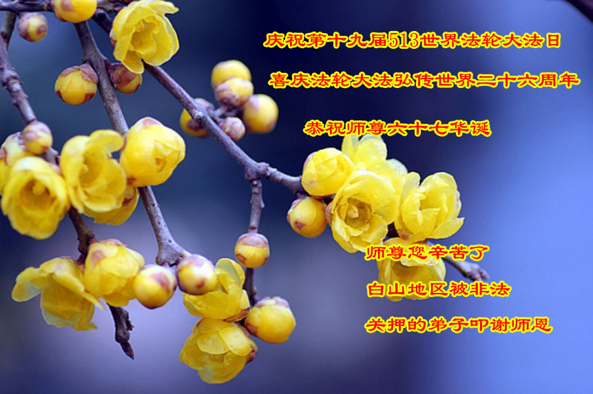 在普天同慶五一三世界法輪大法日的日子裏,弟子非常激動,雖身不由己,但信師信法的信念不動搖!弟子非常想念師父!弟子一定走好走正以後的路,讓師尊少操心。