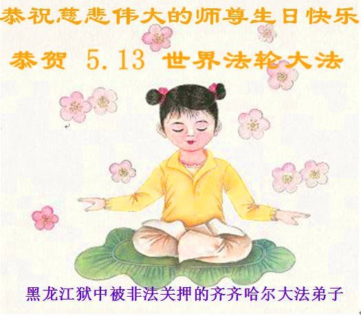 在五月十三日法輪大法日來臨之際,我非常激動。感謝師父慈悲苦度!為了大法弟子、世人、眾生,把天機講給了我們。在大法弟子被迫害、關押時讓我們不氣恨,向內找自己,要向所有被毒害的公、檢、法、司的人講真相,請律師作正義辯護,救度被毒害的眾生,更加加持了弟子的正念。我們只有聽師父的話,做好三件事。
