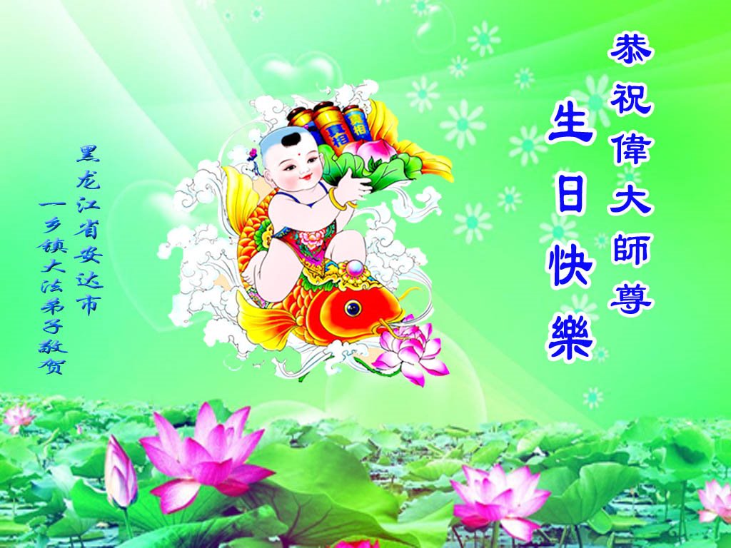 黑龍江省綏化市安達市鄉村三人學法組大法弟子恭祝師父生日快樂!