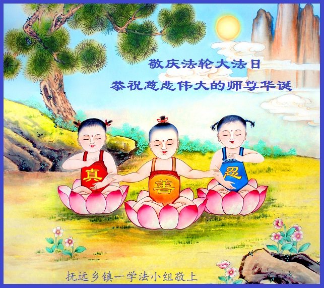 黑龍江撫遠市鄉鎮一學法小組全體大法弟子恭賀法輪大法日暨師尊華誕!