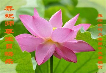 師父好!我是九八年有幸得法的老年大法弟子,修的不太精進,有師父的保護走到今天,師父辛苦了!祝師父生日快樂!今後我要精進,做好三件事,謝謝師父的慈悲救度!