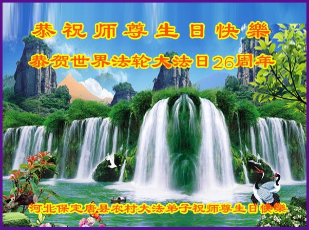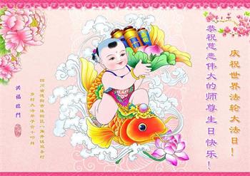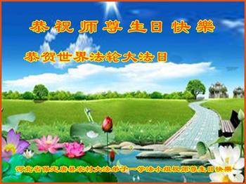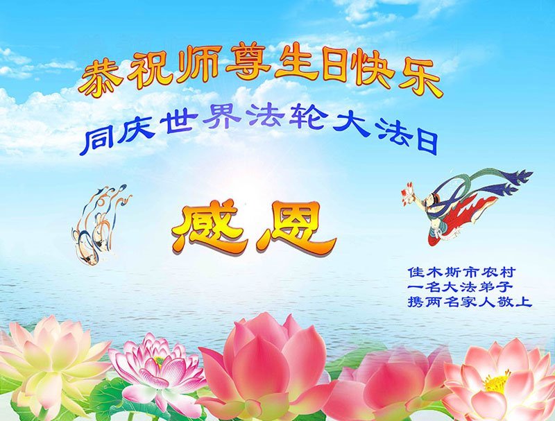 偉大的師尊您好!在這普天同慶法輪大法日之際,我們感恩師尊在宇宙成、住、壞、滅的最後時刻洪傳大法、慈悲救度眾生。師尊您太辛苦了,請師尊放心,我們一定抓緊做好三件事,救度眾生,精進實修自己,圓滿隨師還。弟子們盼師尊早日回大陸。一名小弟子說:師父我愛您!法輪大法好!真、善、忍好!叩拜師尊!