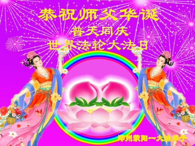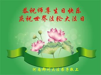 鄭州大法弟子恭祝偉大的師尊生日快樂!
