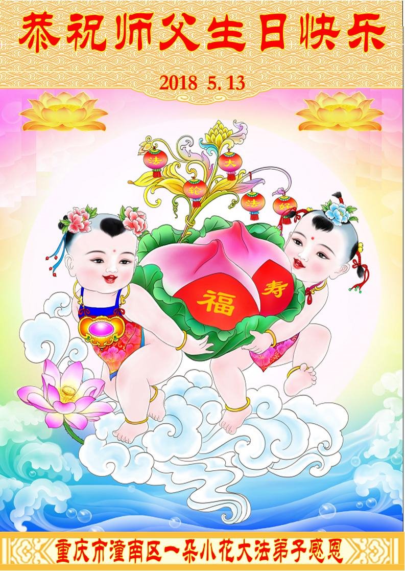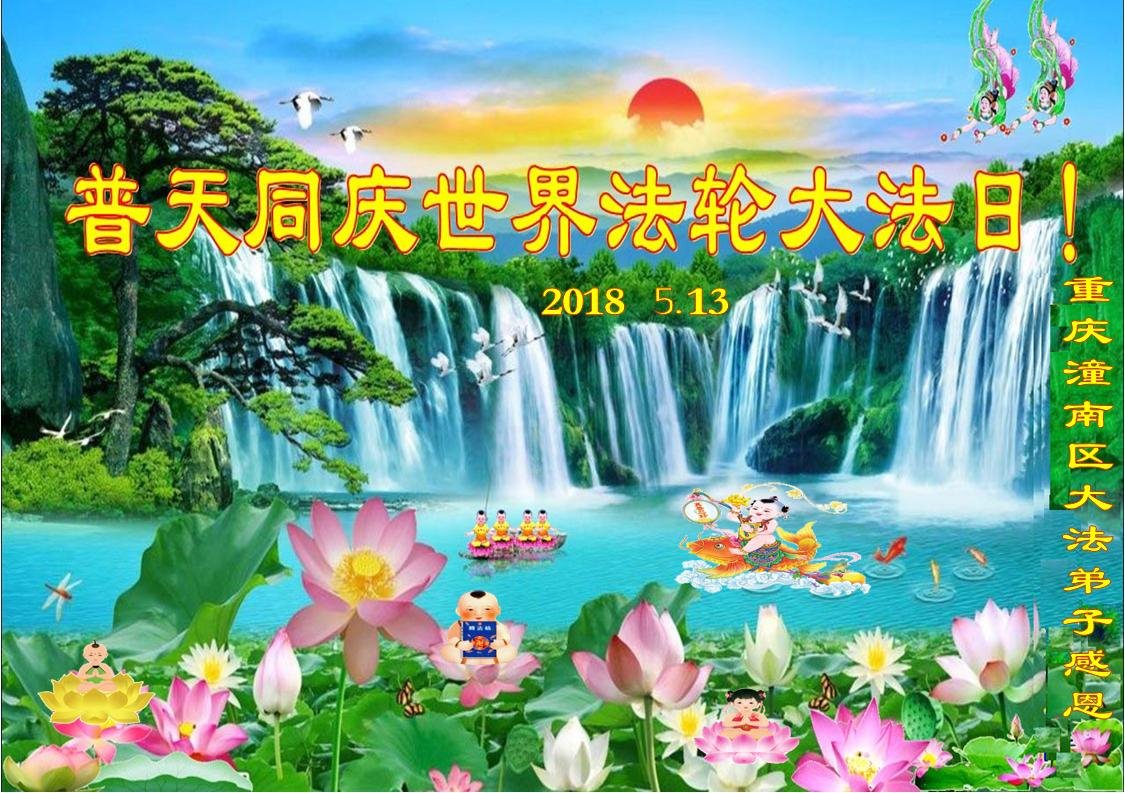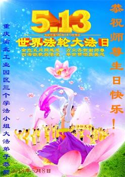 在5.13世界法輪大法日及師尊生日來臨之際,重慶綦江全體大法弟子恭祝師尊生日快樂!感恩師尊的慈悲苦度。我們一定要聽師父的話,走師父安排的路,破除舊勢力的安排,清除間隔,共同精進,做好三件事,跟師父回家。
