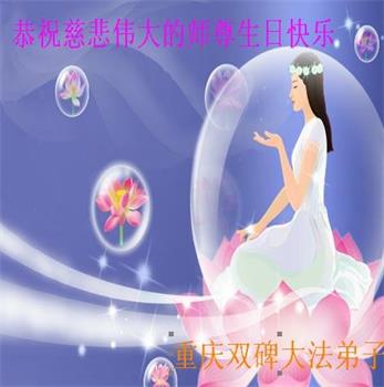 師父辛苦了!我們墊江大法弟子一定聽師父的話,做好師父囑咐的三件事,學好法,好好修好自己;發好正念;通過各種方式講好真相,使更多的世人得救。在「世界法輪大法日」到來之際,我們墊江大法弟子恭祝師尊生日快樂!謝謝師父的慈悲苦度!師父辛苦了!