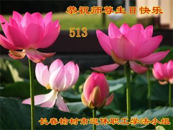 吉林省長春臨河街學法小組大法弟子恭祝師尊生日快樂!恭祝世界法輪大法日!慶祝法輪大法洪傳26週年!