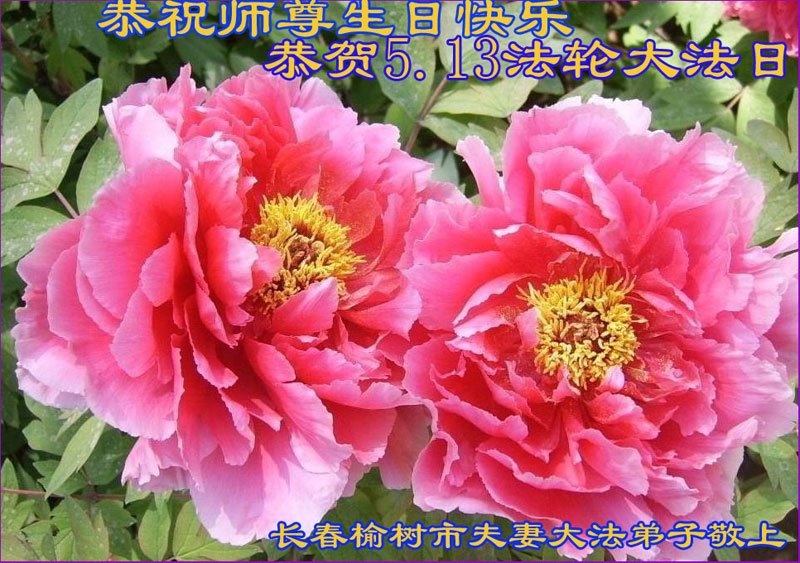 吉林省長春學法小組大法弟子兩姐妹恭祝師尊生日快樂!恭祝世界法輪大法日!慶祝法輪大法洪傳26週年!