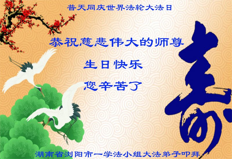在普天同慶同祝同賀同頌5.13世界法輪大法日子裏,我們湖南省長沙市瀏陽大法弟子恭祝慈悲偉大的師尊生日快樂!
