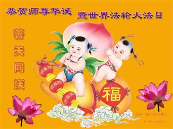 又到一年一度的世界法輪大法日,弟子懷著感恩的心恭祝慈悲偉大的師尊生日快樂!師父,弟子想念您!不管遇到甚麼,弟子堅修大法,堅信師父的心決不會動搖。這一年弟子因人心太多不夠精進,但弟子一定從哪裏跌倒了就從哪裏站起來,多學法、學好法,不斷的在法中歸正好自己,有師在有法在,弟子定要兌現誓約,成為一名名副其實的大法徒!再次叩謝師尊您的慈悲苦度!謝謝師尊!