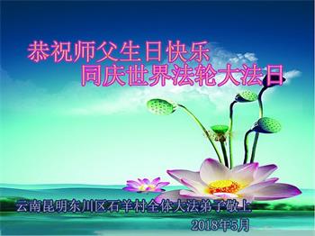 雲南曲靖大法弟子恭賀法輪大法日!恭祝師尊生日快樂!