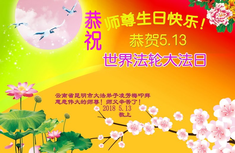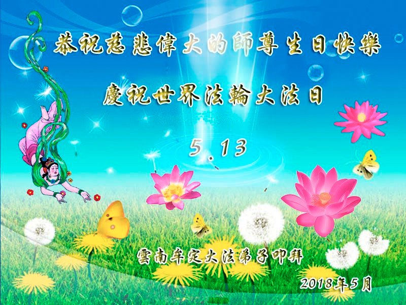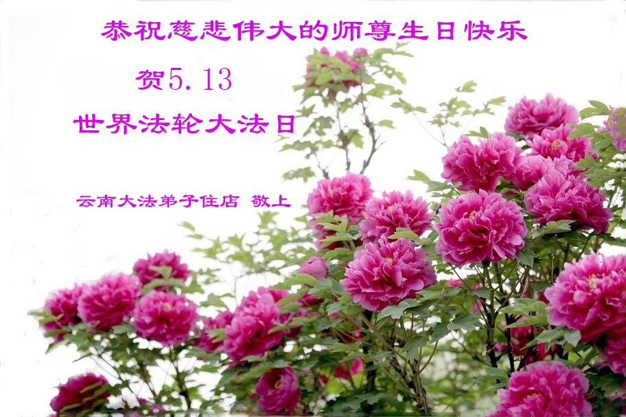 雲南省大法弟子恭祝慈悲偉大的師尊生日快樂!恭賀5.13世界法輪大法日!