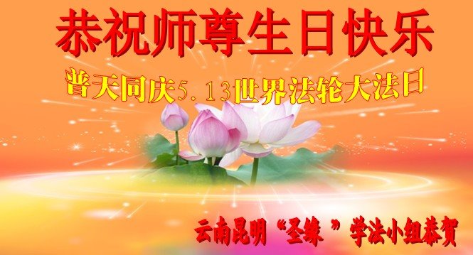 雲南昆明「聖緣」學法小組大法弟子恭祝師父生日快樂!普天同慶5.13世界法輪大法日!