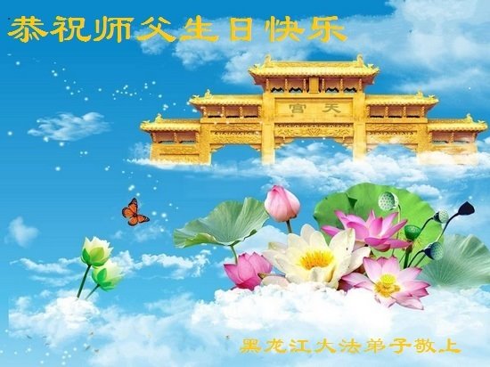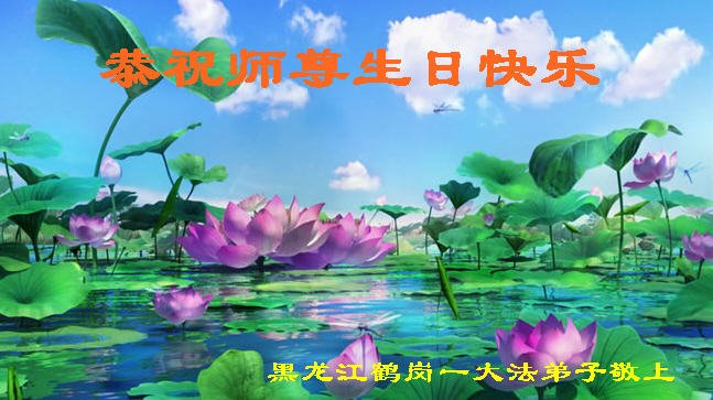 黑龍江省東部邊陲小鎮全體大法弟子恭祝慈悲偉大的師父生日快樂!