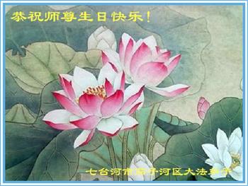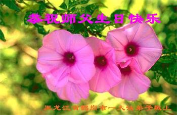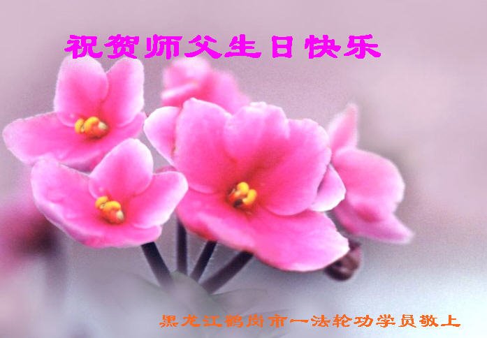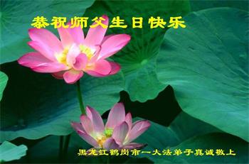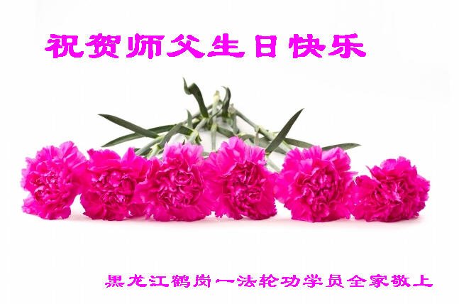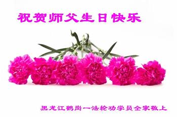 黑龍江鶴崗市一法輪功學員全家人恭敬師父生日快樂!