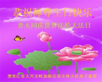 黑龍江省大興安嶺加格達奇全體大法弟子恭祝師尊生日快樂!普天同慶世界法輪大法日!