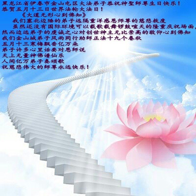 黑龍江省伊春大法弟子感謝師父慈悲苦度!恭祝師尊生日快樂!慶祝世界法輪大法日!