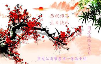 黑龍江省七台河市勃利縣鐵西一學法小組大法弟子賀詞:恭祝師尊生日快樂!