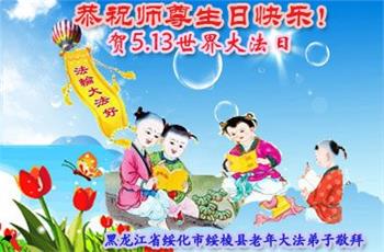 黑龍江省綏化市綏稜縣老年大法弟子恭祝師父生日快樂!暨法輪大法日!