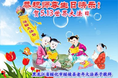 黑龍江伊春一老年大法弟子恭祝師父生日快樂!慶祝世界法輪大法日!