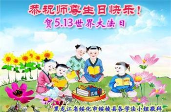 黑龍江省綏化市綏稜縣各學法小組大法弟子恭祝師尊生日快樂!祝賀世界法輪大法日!