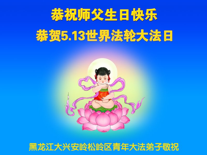黑龍江大興安嶺松嶺區青年大法弟子恭祝師父生日快樂!恭賀世界法輪大法日!