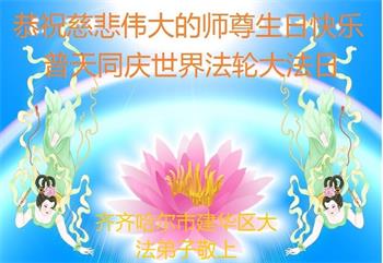 黑龍江省齊齊哈爾大法弟子恭祝師尊華誕暨世界法輪大法日!