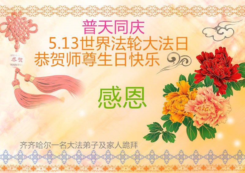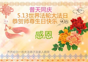 黑龍江省齊齊哈爾一名大法弟子及家人恭祝師尊生日快樂!普天同慶世界法輪大法日!